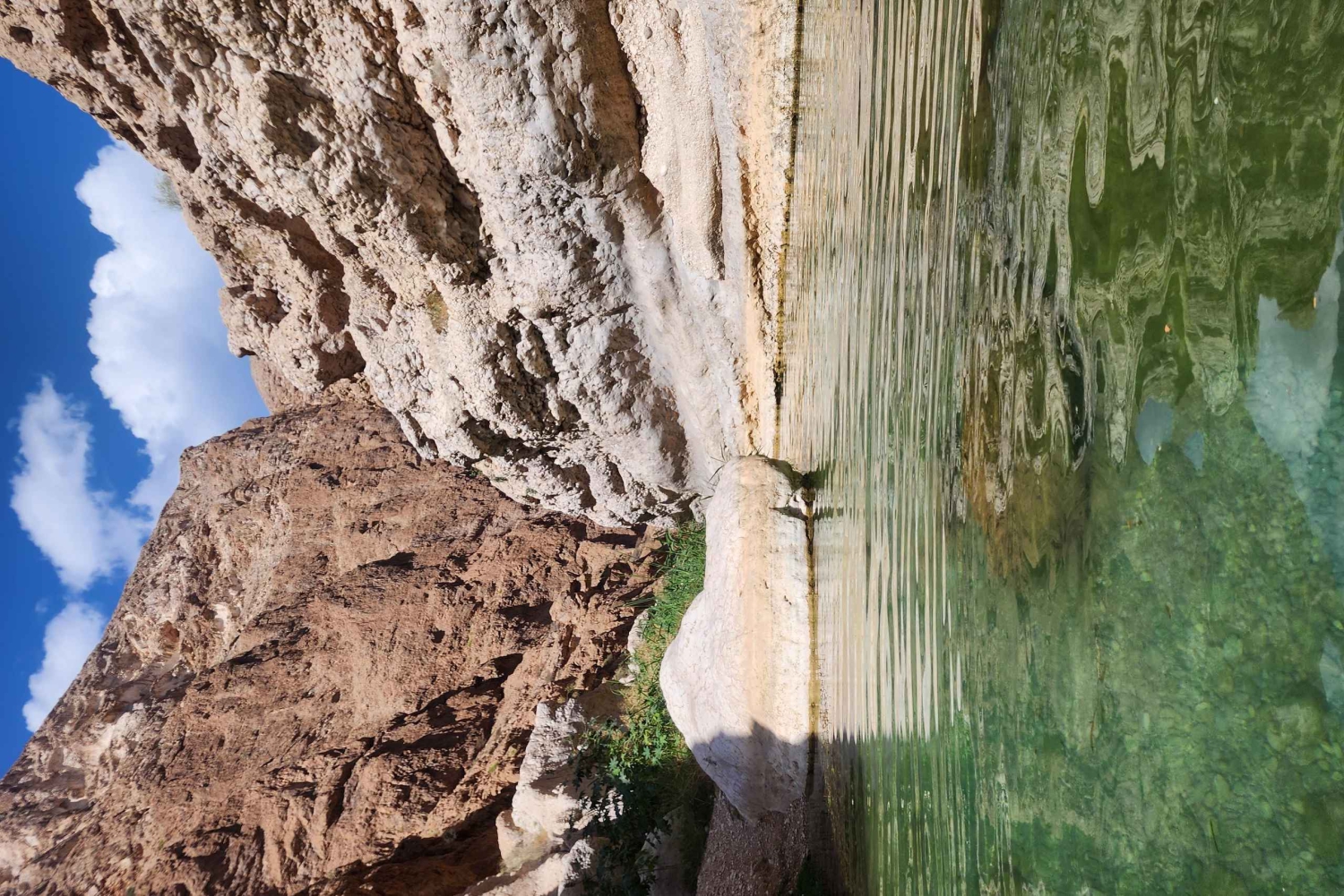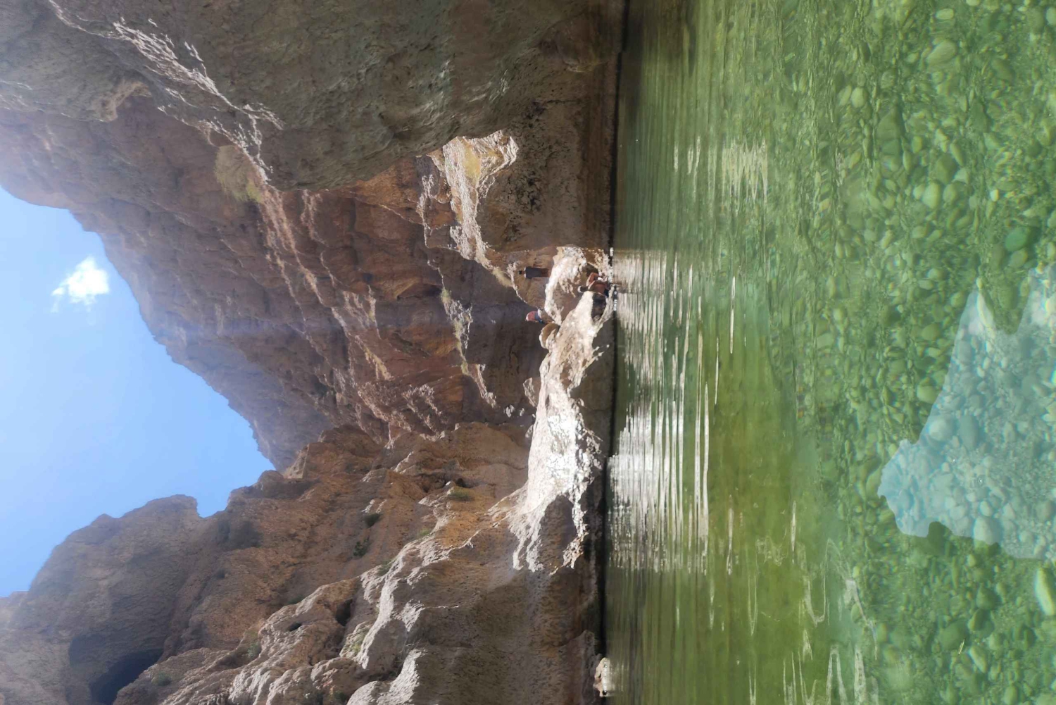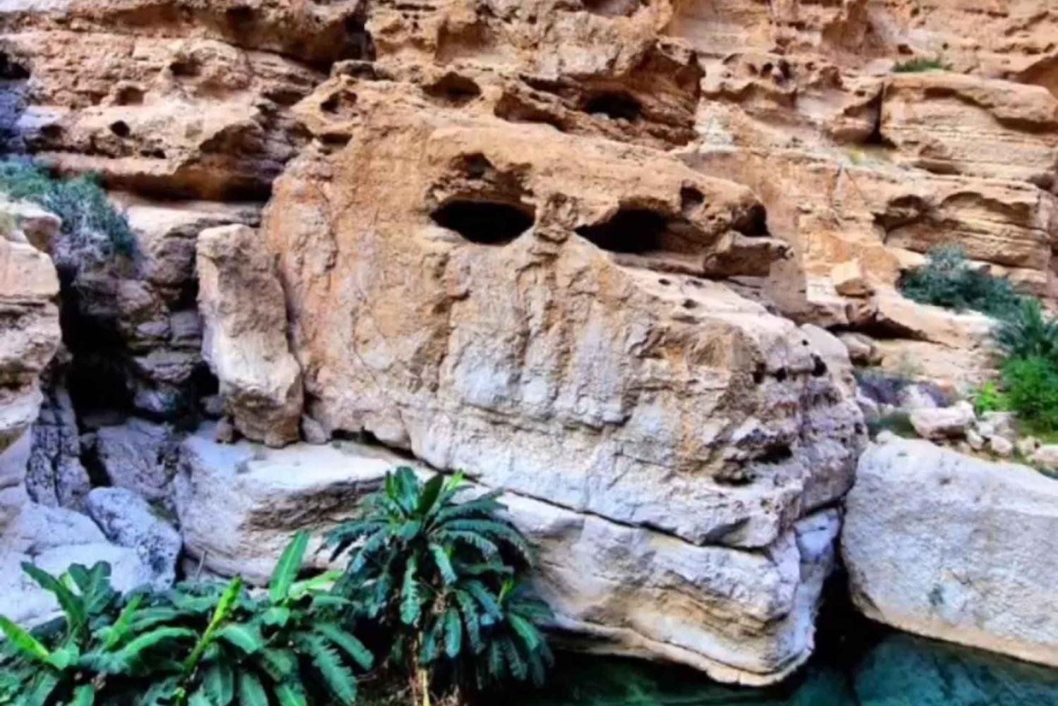 ابدأ اليوم في الصباح الباكر متجهًا إلى جنوب شرق مسقط. المحطة الأولى ستكون حفرة الحوض (ثقب كبير أحدثه نيزك سقط واصطدم بالأرض). ثم نسير على طول الشاطئ الأبيض حتى نصل إلى وادي الشاب. 45 دقيقة من المشي بين الجبال حتى نصل إلى حمامات السباحة حيث يمكنك السباحة في المياه الزرقاء الصافية والعذبة. بعد الاسترخاء يمكنك تناول الغداء هناك أو العودة إلى المدينة لتناول طعام الغداء في أحد المطاعم المحلية. وأخيرا عدنا إلى مسقط. .Includes