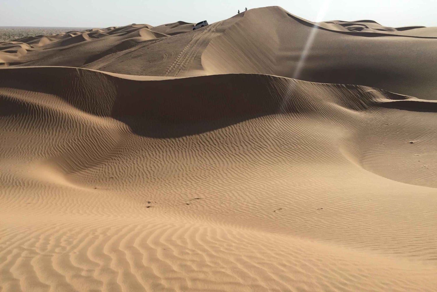 استكشف الروائح المقدسة، وتسوق في الأسواق القديمة، واقهر أكبر صحراء في العالم. تبدأ رحلتك في الساعة 13:30 مع اصطحابك من الفندق من قبل مرشدك المحلي المعتمد، مما يضمن تجربة آمنة ومثرية على مدار اليوم. ابدأ بزيارة مزرعة جمال تديرها عائلة، حيث ستتذوق حليب الإبل الطازج وتكتسب نظرة ثاقبة على نمط الحياة الصحراوي التقليدي من الأشخاص الذين يعيشون فيه يوميًا. إنها تجربة نادرة وشخصية مع جذور البدو العمانيين. بعد ذلك، اتبع مسار اللبان التاريخي إلى سوق حافة، أقدم سوق في صلالة. تجول في الأزقة المتعرجة المليئة برائحة اللبان والعود والمر. هنا ستتسوق لشراء راتنجات اللبان النادرة والعطور التقليدية والتذكارات المصنوعة يدويًا بينما تتعلم كيف كان التجار يحملون هذه السلع الثمينة عبر الرمال العربية. يستمر المسار إلى وادي الدوكة، وهو محمية مدرجة في قائمة اليونسكو لأشجار اللبان البرية. تجول بين أشجار اللبان المقدسة المشوهة وشاهد بنفسك كيف لا يزال يتم استخراج الراتنج القديم يدويًا، دون تغيير منذ آلاف السنين. خذ قسطًا من الراحة في بلدة ثمريت الصحراوية التاريخية، التي كانت ذات يوم محطة حيوية على طريق البخور. استرخ مع فنجان من القهوة العمانية القوية واستمتع بتذوق لحم الإبل النادر، المعروف بنكهته الغنية والحلوة قليلاً. تشتهر هذه المنطقة بأطباق لحم الإبل المحضرة بدهون الصحراء المحلية، مما يمنح اللحم ملمسًا رقيقًا وطعمًا مميزًا. إنها وصلة طهي حقيقية بماضي عُمان البدوي - ولا يحظى بتجربتها سوى عدد قليل من المسافرين. الآن تبدأ المغامرة الحقيقية. اربط حزام الأمان في سيارة دفع رباعي مجهزة تجهيزًا كاملاً حيث يأخذك سائقك المرخص له على الطرق الوعرة، والمدرب على الملاحة الصحراوية المتقدمة، بعيدًا عن المسار المطروق إلى قلب الربع الخالي، المعروف أيضًا باسم الربع الخالي - أكبر صحراء رملية على وجه الأرض. اشعر بارتفاع الأدرينالين لديك أثناء تقريع الكثبان الرملية الذهبية الضخمة، وتسلق التلال شديدة الانحدار قبل الانزلاق إلى الجانب الآخر في رحلة مثيرة وآمنة. سيارتك مجهزة بمكيف الهواء وميزات السلامة، ويقود جميع رحلات القيادة في الصحراء محترفون يتمتعون بمعرفة محلية عميقة. عندما تبدأ السماء في التوهج بدرجات من اللون الأصفر والوردي، سيقودك مرشدك إلى إطلالة بانورامية هادئة في الكثبان الرملية. سيرشدك سائقك المحلي الخبير، الذي يعرف الصحراء مثل ظهر يده، إلى كثيب منعزل بعيدًا عن الطرق السياحية - مكان هادئ حيث ستكون آثار أقدامك الوحيدة في الرمال. اخلع حذاءك وامشِ حافي القدمين على الرمال الناعمة الباردة. لا حشود ولا ضوضاء - فقط سلام صحراوي خالص. سيسعد مرشدك بمساعدتك في التقاط صور لا تُنسى، أو يتركك بمفردك مع الأفق والرياح وجمال الربع الخالي. يحيط بك سكون ليلة الصحراء وأنت تعود إلى صلالة، حيث يرحب بك وهج أضواء القرية البعيدة في المنزل. هذه الرحلة الهادئة هي النهاية المثالية ليومك — لحظة أخيرة لاستيعاب جمال الصحراء قبل العودة إلى الحياة العصرية.Includes