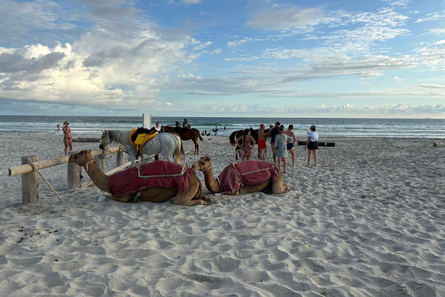 - شاهد غروب الشمس فوق المحيط أثناء ركوبك على طول الشاطئ على ظهر الجمل