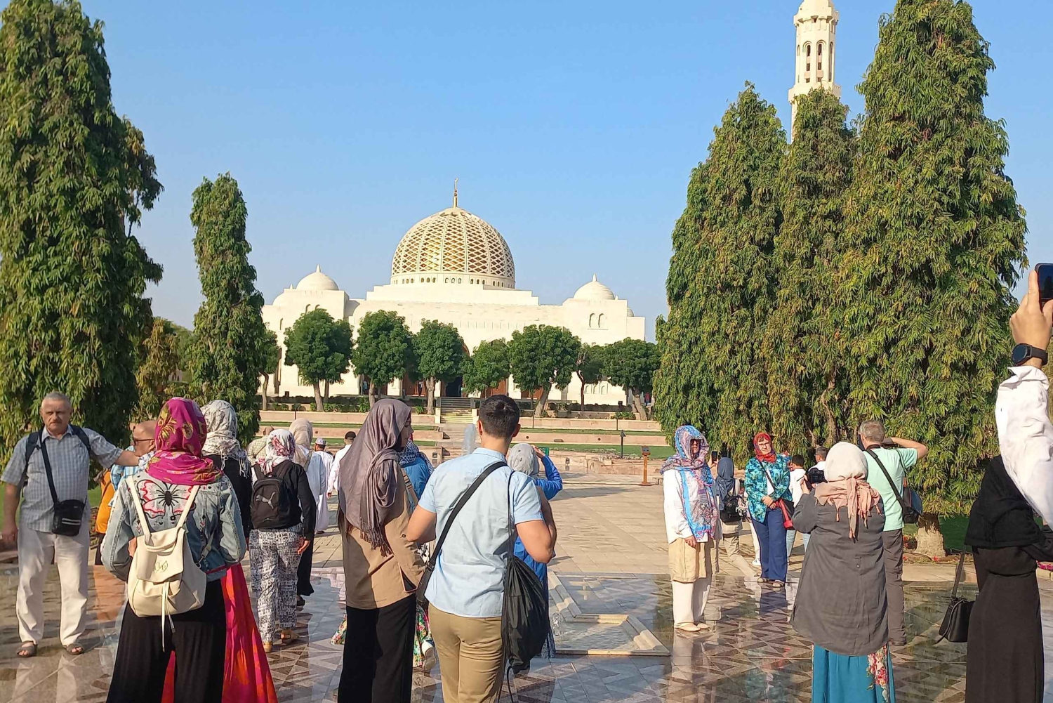 زيارة الجامع الأعظم التجول حول الوزارات ومنطقة دار الأوبرا السلطانية التوقف لالتقاط الصور في شاطئ القرم تذوق الخبز العماني بالعسل وشاي الكرك زيارة سوق مطرح زيارة قصر العلم التوقف لالتقاط الصور في حصن الجلالي والميراني المياه والشاي القهوة العمانية والحلويات العمانية-