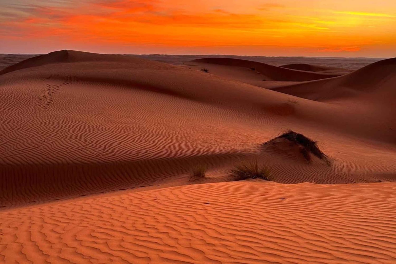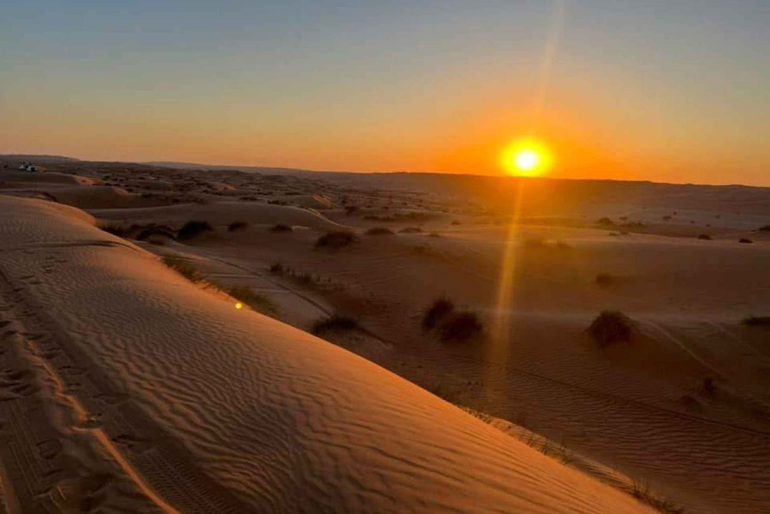 انطلق في جولة لمدة 3 أيام في عُمان من مسقط. قم بزيارة سوق نزوى وحصن نزوى ورمال وهيبة ووادي بني خالد وصور ورأس الحد ووادي شاب وشاطئ الزعانف وحفرة بيمه. المبيت في رمال وهيبة ورأس الحد. يوم 1: مسقط - سوق نزوى وسوق نزوى ورمال وهيبة غادر مسقط إلى العاصمة العمانية القديمة، نزوى. قم بزيارة سوق نزوى الشهير، حيث يمكنك زيارة سوق نزوى الشهير، حيث يمكنك العثور على مجموعة متنوعة من الباعة الذين يعرضون بضائعهم في شوارع السوق. بجوار السوق توجد قلعة نزوى التي توفر إطلالات رائعة على هذه المدينة القديمة والجبال المحيطة بها. من نزوى، واصل رحلتك إلى صحراء رمال وهيبة. استرخِ في المخيم أو شارك في مغامرة قيادة سيارات الدفع الرباعي في الكثبان الرملية. شاهد غروب الشمس المذهل للصحراء على أحد الكثبان الرملية الكبيرة. اختتم يومك بتناول العشاء في المخيم. المبيت في رمال وهيبة ساندز. يوم 2: رمال وهيبة - وادي بني خالد - رأس الحد توجه إلى وادي بني خالد، أحد أكبر وأجمل الوديان في عُمان. بعد الوصول إلى وادي بني خالد، قم بنزهة قصيرة سيراً على الأقدام لرؤية برك المياه الزرقاء الصافية المتلألئة والصفاء المثالية للسباحة الطويلة. استرخِ واستمتع بحمام شمسي في وادي الوادي الجميل ذي المناظر الخلابة. من وادي بني خالد، واصل رحلتك إلى صور. قم بجولة صغيرة في مدينة صور وشاهد مصنع المراكب الشراعية الخشبية حيث يتم بناء المراكب الشراعية الخشبية. شاهد السفينة القديمة وقم بزيارة الجزء القديم من صور حيث تم تصميم معظم المنازل بأبواب ونوافذ خشبية. واصل السير إلى رأس الحد إلى فندقك/منتجعك لقضاء الليلة. في المساء بعد تناول بوفيه العشاء، قم بزيارة محمية السلاحف في رأس الجنز. اذهب في جولة سيراً على الأقدام على الشاطئ ليلاً تحت ضوء النجوم، حيث لديك فرصة كبيرة لرؤية السلاحف البحرية وهي تتعثر على الشاطئ لبناء عشها ووضع بيضها. المبيت في رأس الحد. يوم 3: رأس الحد - وادي شاب - شاطئ الزعانف - الحفرة - مسقط استمر في جولتك إلى وادي شاب، وهو ممر أخدود هائل تصطف على جانبيه أشجار النخيل ودلائل رائعة على ما يمكن أن تفعله قوة المياه المنحدرة من الجبال في الطبيعة. بعد المشي لمسافة 45 دقيقة عبر الوادي، يمكنك الوصول إلى إحدى برك المياه الصافية الكريستالية. اسبح في المياه الدافئة من بركة إلى أخرى حتى تصل في النهاية إلى البركة الأخيرة حيث توجد فتحة بين الصخور الضخمة تسمح لك بالسباحة في كهف رائع به شلال صغير. توقّف عند شاطئ الزعانف الذي ينفتح على بانوراما من الرمال البيضاء المذهلة والشاطئ المرصوف بالحصى المثير للاهتمام، مع مياه فيروزية متلألئة ونسيم بارد ناعم. التالي. محطتنا التالية هي حفرة بيمة، وهي حفرة كبيرة بالقرب من البحر مع بحيرة كبيرة في قاعها حفرة بمة منخفض مملوء بالمياه، وهي حفرة مائية من الناحية الهيكلية في الحجر الجيري في شرق محافظة مسقط في عمان، وهي بحيرة من المياه الفيروزية, يبلغ عرضها 50 متراً وعرضها 70 متراً وعمقها 20 متراً تقريباً، وتبعد عن البحر حوالي 600 متر فقط بين مدينتي دباب الساحلية وقرية بيمة، تشكلت الحفرة المجرى نتيجة انهيار الطبقة السطحية بسبب انحلال الحجر الجيري تحتها.Includes
