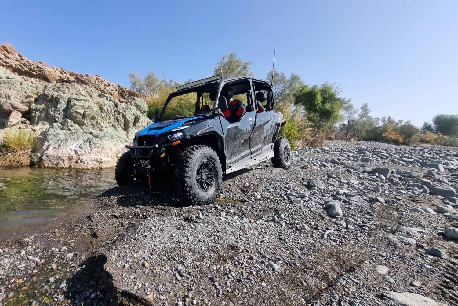 مقعد على مركبة UTV قوية معدات أمان كاملة وجبات خفيفة سائق ومرشد خبير وصول مباشر إلى الطبيعة البكر في عُمان خيارات موسيقى مخصصةImportant Information
