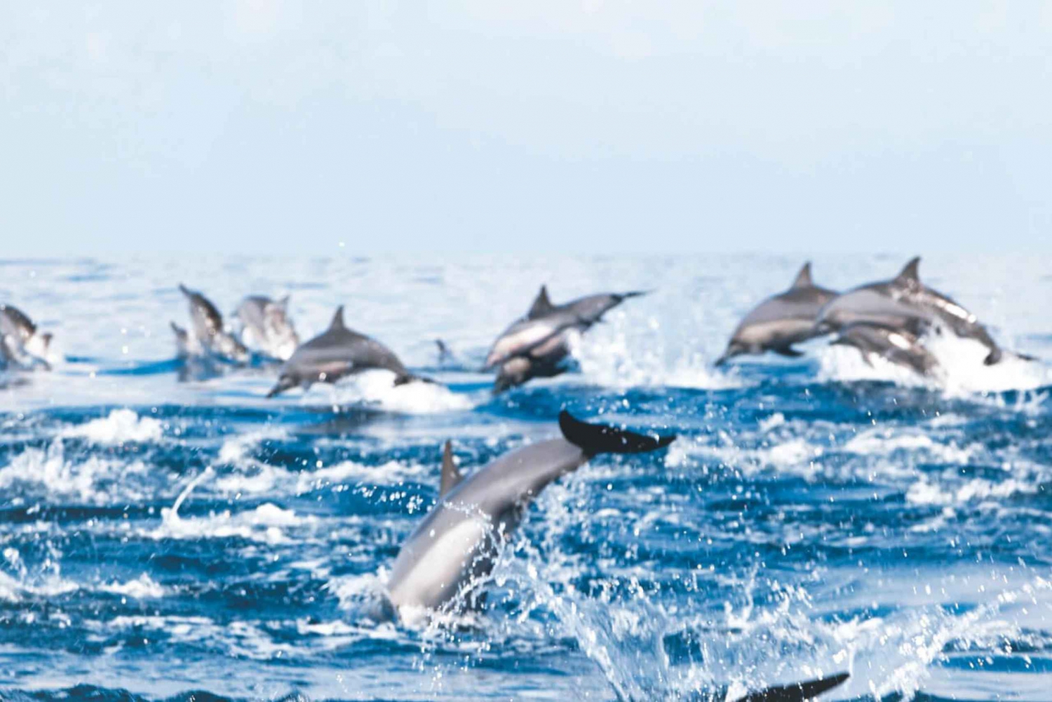 Benyt lejligheden til at se delfinerne og opdage Omans undervandsverden, komplet med snorkelmasker. Din dag begynder med at opleve delfinernes kraft, ynde og hastighed i deres naturlige miljø, hvilket er et helt fantastisk og spektakulært syn. Lad kaptajnen hjælpe dig med at identificere de forskellige delfintyper, som oftest ses her: den akrobatiske spindeldelfin, den kraftfulde flaskesnudedelfin og den almindelige delfin. Når du har set delfinerne, kan du snorkle rundt i den fantastiske Bandar Khiran Bay. Oplev den blændende undervandsverden, og svøm sammen med skildpadder og andre varierende og unikke former for havliv. Du vil elske denne nye verden under vandet, et virkelig mindeværdigt og autentisk snorkeleventyr.