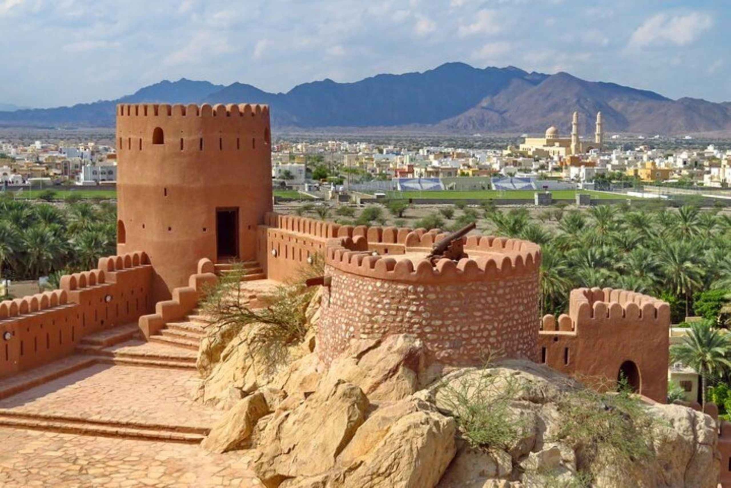- Beundr udsigten over bjergene og de grønne dadelplantager fra fæstningen