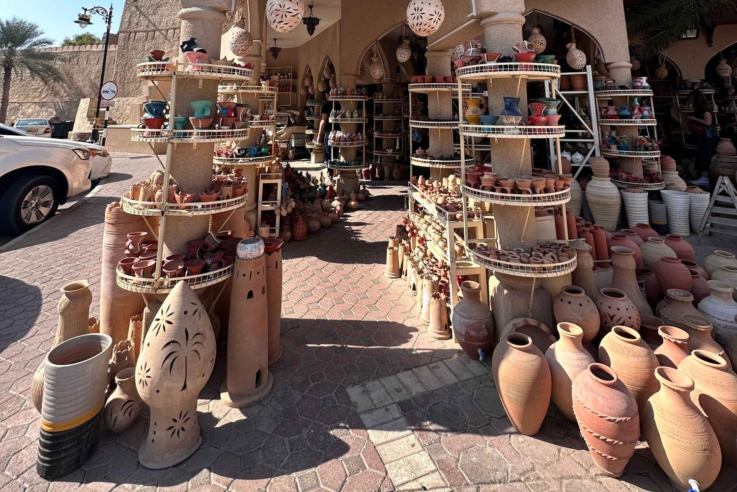 Byen Nizwa er en gammel arkæologisk by, hvor Nizwa-slottet ligger, og historien er et vidnesbyrd om det. Ved siden af ligger et traditionelt gammelt marked, der ikke stopper den brede bevægelse i køb og salg. Du vil se det med en omansk guide, og det er en funktion, der adskiller vores virksomhed. Vi kører dig fra Muscat direkte til Nizwa-slottet. Vi går ind på slottet og ser slottets funktioner og dets historie, og tiden vil være åben for dig. Når vi er færdige, går vi til kulturarvsmarkedet for at se køb og salg af lokale produkter og drikke omansk kaffe, og du kan shoppe, hvis du ønsker det, og Jebel AkhdarIncludes