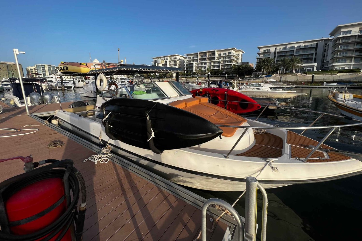 Erlebe das Dimaniyat-Insel-Naturschutzgebiet mit einer luxuriösen Mini-Yacht, toller Gastfreundschaft und coolen Sportarten wie Schnorcheln und Kajakfahren. Das Erlebnis wird durch das erfahrene lokale Personal abgerundet, das dafür sorgt, dass dieser Ausflug zu einem einzigartigen Erlebnis wird, und Unterwasserfotos von dir und deinen Freunden und deiner Familie macht, damit du deine Erlebnisse überall teilen kannst. Treffen Sie Ihren Guide 15 Minuten vor Ihrer Abfahrtszeit am Abholpunkt. Danach dauert es 30 bis 45 Minuten, um zu den Inseln zu gelangen. Schwimmen, schnorcheln, Kajak fahren und genießen Sie das Fotografieren auf den Inseln und unter Wasser, sobald Sie dort angekommen sind. Genießen Sie Speisen und Getränke auf dem Boot. Verlassen Sie die Inseln 30-45 Minuten vor Ende Ihrer Reise, um zum Ausgangspunkt zurückzukehren.Includes
