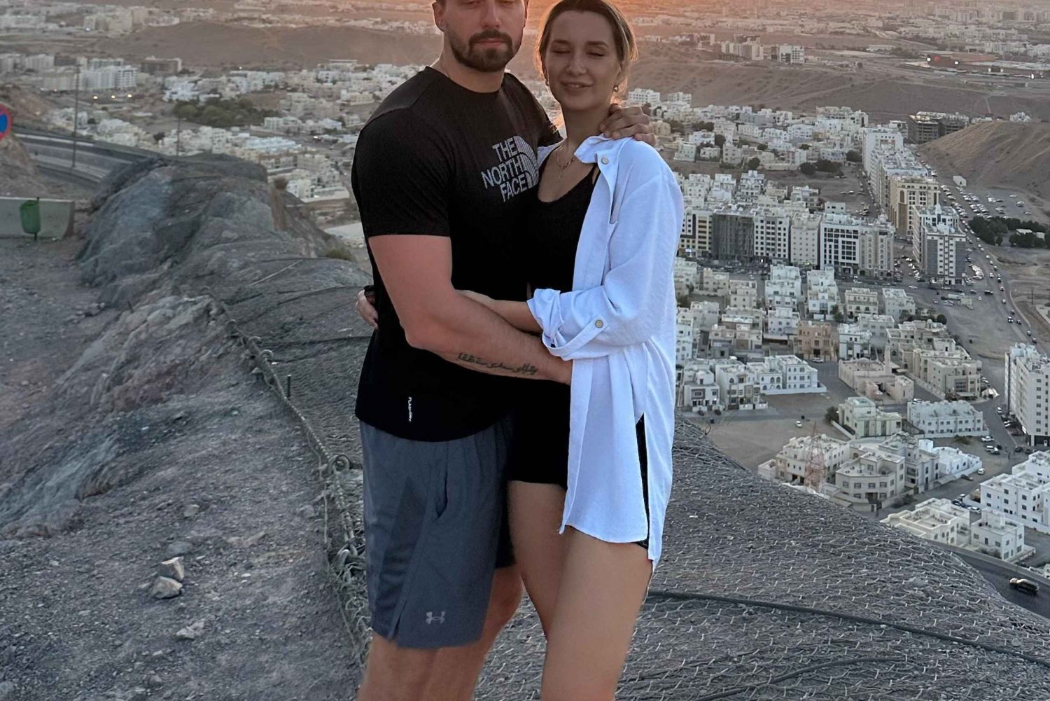 Erlebe die Schönheit von Maskat bei Sonnenuntergang auf einer Führung Mach atemberaubende Fotos von einem Berggipfel, genieße ein leckeres Shawarma-Abendessen und erkunde den Souk von Mutrah und die Corniche.