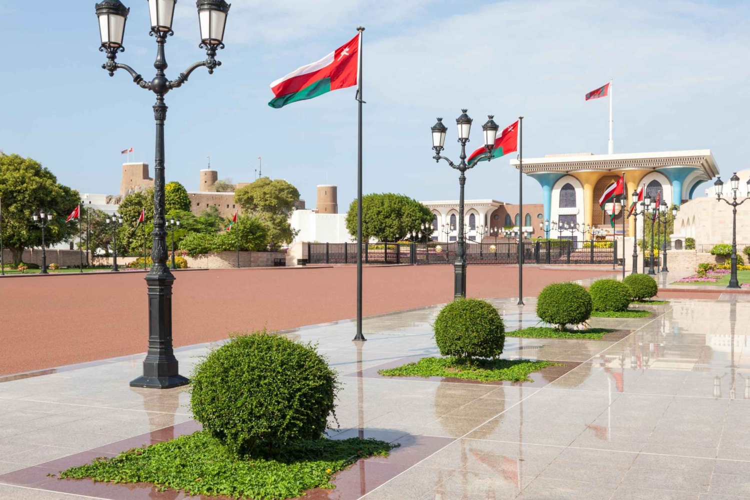 Visitarás la Gran Mezquita, la Mezquita de Al Amin, el casco antiguo de Mascate, el Museo Nacional, harás una parada fotográfica en el Palacio de Al Alam y visitarás la Ópera Real, obra maestra de la arquitectura moderna.