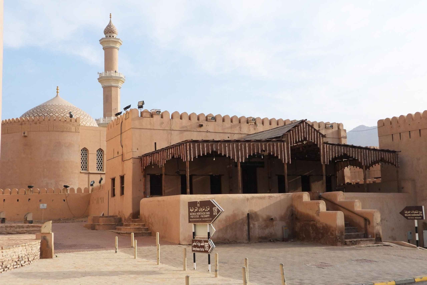 1-Recoge a los carpinteros en el hotel de Mascate 2-Ir a Birkat Al Mouz y tomar café tradicional omaní 3-Ir al Mercado de Nizwa y al Castillo de Nizwa 4-Pausa para comer (Comida tradicional árabe) 5-Visita Falaj Dars 6-Regreso a Mascate y traslado de los acompañantes a los hoteles. De Mascate a Nizwa unas 2 horas + 2 horas de vuelta Duración total en Nizwa: 6 - 7 horas -Birkat Al Mouz 1,5 horas -Zoco de Nizwa, Fuerte de Nizwa, 2,5 horas -Pausa para comer 1,5 horas -Falaj Dars 1 horaIncludes