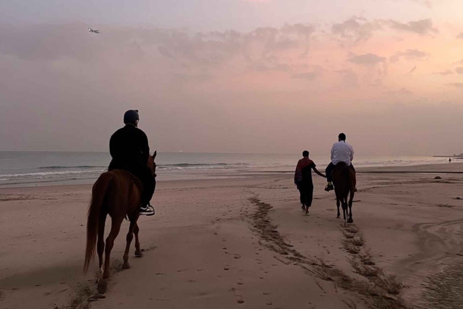 Experience the beauty of Muscat’s coastline from a unique perspective with a relaxing horse-riding experience along the beach. Ride along soft golden sands as the waves roll in beside you, enjoying breathtaking views of the Arabian Sea and the refreshing coastal breeze. This scenic journey offers the perfect balance of adventure and tranquility, making it one of the most memorable outdoor activities in Muscat. Suitable for both beginners and experienced riders, this guided experience ensures comfort and safety throughout the ride. Participants should be at least 8 years old, with a maximum weight of 95 kg, allowing for a smooth and enjoyable experience for both rider and horse. The calm pace makes it ideal for first-time riders and those looking to enjoy a peaceful moment by the sea. Whether you’re visiting Muscat for the first time or looking for a unique way to explore its natural beauty, this beach horse riding experience is a must-do. Capture stunning photos, breathe in the fresh sea air, and create unforgettable memories along Oman’s beautiful coastline.Includes