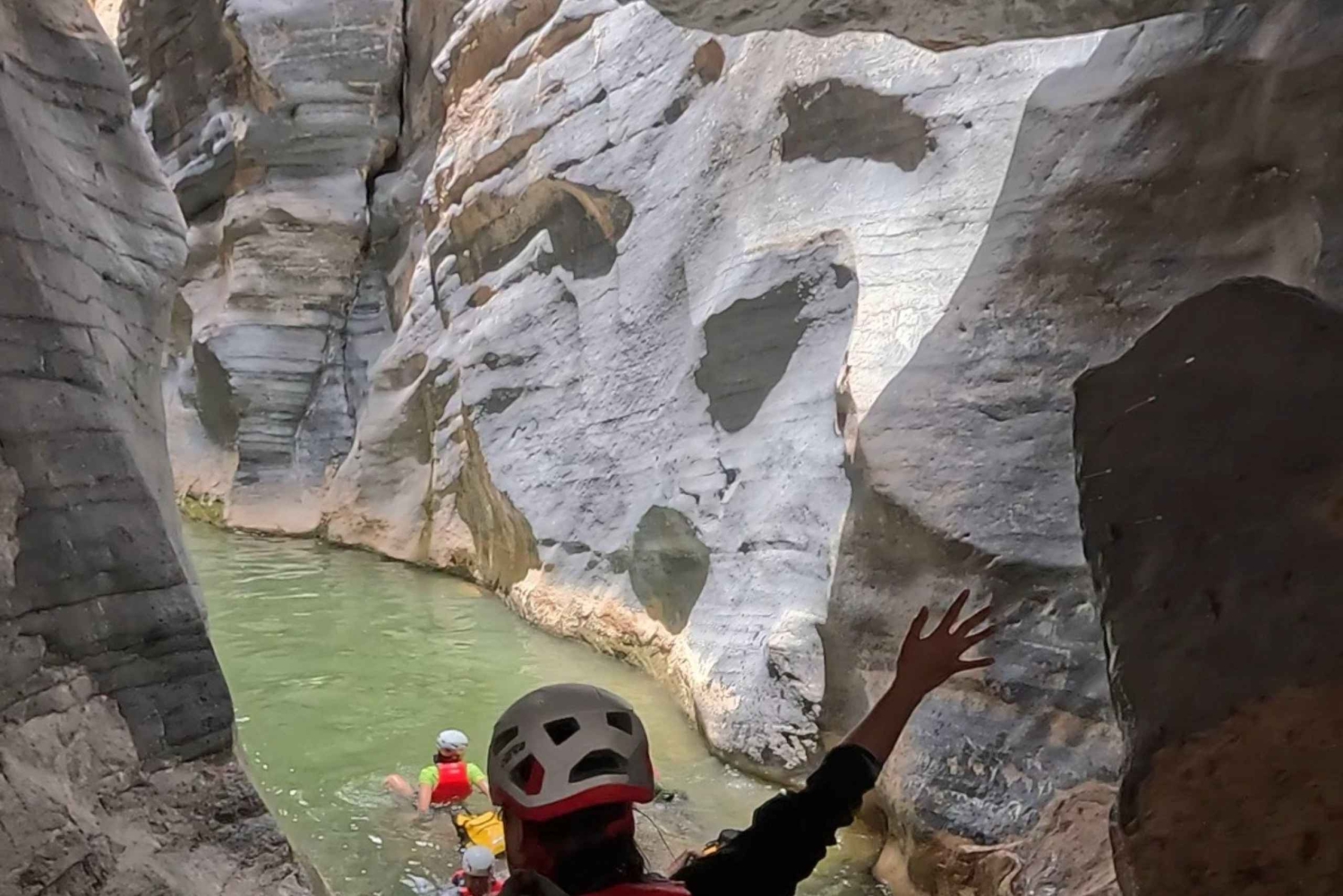 Embark on a canyoning adventure in Snake Canyon, Oman. Abseil down 3 descents, swim in natural pools, and navigate narrow gorges with professional guides.