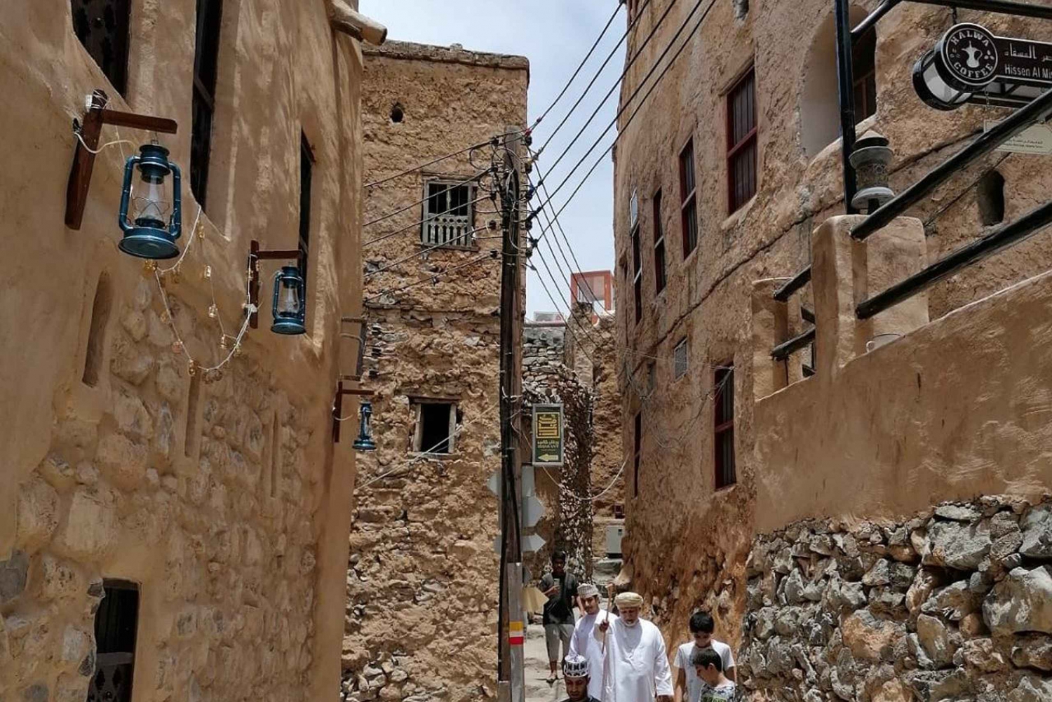 Visite guidée historique et culturelle de Mascate à Nizwa avec son célèbre souk traditionnel et son grand fort puis promenade guidée entre de belles fermes et de vieilles maisons dans un beau village (Misfat Al-Abriyeen).