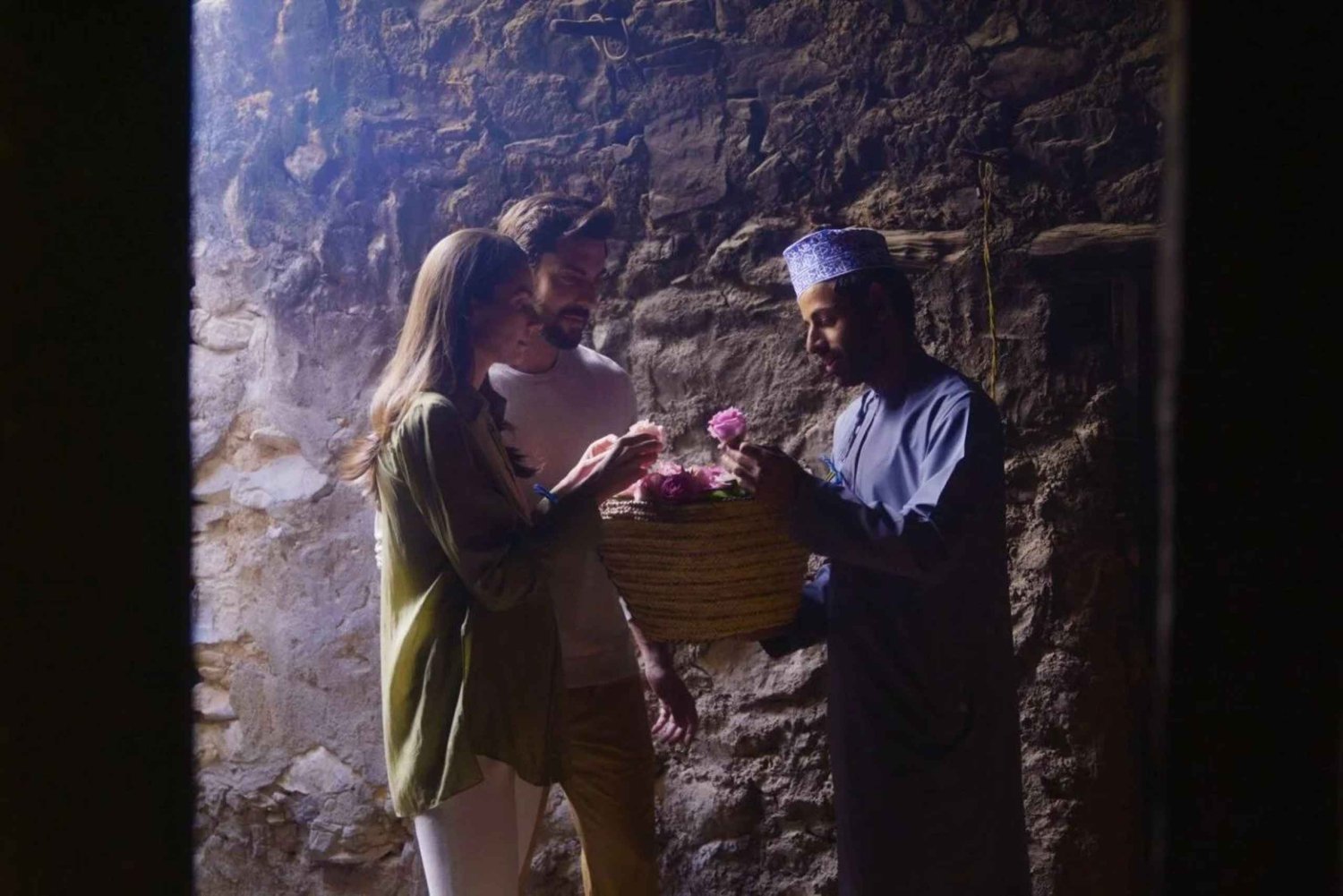 Experience the perfect mix of history, culture, and breathtaking landscapes on this immersive full-day journey from Muscat. Your day starts with a visit to Nizwa Fort, where you’ll explore the massive round tower and learn about the fort’s role in Omani history. Stroll through the Nizwa Souq, a bustling market offering silver jewelry, dates, spices, and traditional pottery. Next, stop at Barkat Al Mouz, home to one of the five UNESCO-listed aflaj irrigation systems, Falaj Al Khatmeen, stretching 2.5 km. Here you’ll explore the fascinating ghost village — abandoned houses of straw and mud, silent witnesses to the civil war that shaped modern Oman. From Barkat Al Mouz, we ascend up the Hajar Mountains to Jebel Akhdar. Known as the 'Green Mountain,' Jebel Akhdar offers cooler air and stunning terrace farming. Your visit includes: Rummana: depending on the season, pick pomegranates, figs, or pears, and enjoy cultural workshops or performances at the open-air theatre. Al Aqar Village: wander through stone houses and falaj channels with sweeping views. Al Ain Steps: a scenic pathway offering incredible photo opportunities. Rose Water Plant Garden (March–May) : witness the rose harvest and traditional distillation process. Visit Diana’s Point, named after Princess Diana, for spectacular photo opportunities over the canyon. WN Café: relax with coffee or tea while taking in breathtaking mountain views. A traditional Omani lunch is served during the day, giving you a taste of local hospitality. After enjoying the mountain scenery, return to Muscat in the evening with a deeper appreciation of Oman’s heritage and natural beauty.Includes