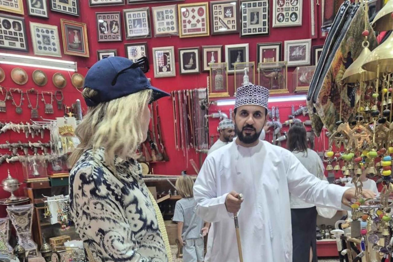 Découvrez le cœur d'Oman lors de cette visite culturelle immersive d'une journée complète. Commencez votre voyage depuis Mascate par une route panoramique à travers les montagnes Hajar jusqu'à Nizwa, l'ancienne capitale d'Oman. Commencez par une visite du fort de Nizwa, l'un des lieux d'intérêt les plus célèbres du pays, connu pour son immense tour circulaire et son histoire stratégique. Poursuivez votre route vers le souk de Nizwa, un marché animé où les habitants échangent des bijoux en argent, des épices, de la poterie et des dattes fraîches. Après un déjeuner traditionnel omanais, dirigez-vous vers le vieux village d'Al Hamra, qui abrite certaines des maisons en briques de boue les mieux préservées d'Oman. Promenez-vous dans les ruelles étroites et visitez le musée Bait Al Safah, où des femmes locales présentent des activités artisanales traditionnelles telles que la préparation du café omanais, la fabrication du pain et le tissage. Notre dernier arrêt est Misfat Al Abriyeen, l'un des plus beaux villages de montagne d'Oman. Promenez-vous dans ses ruelles pavées, découvrez les anciens canaux d'irrigation falaj et admirez la vue sereine sur les palmeraies et les fermes en terrasses avant de retourner à Mascate. Cette visite constitue une combinaison parfaite d'histoire, de culture et de paysages de montagne époustouflants.Includes