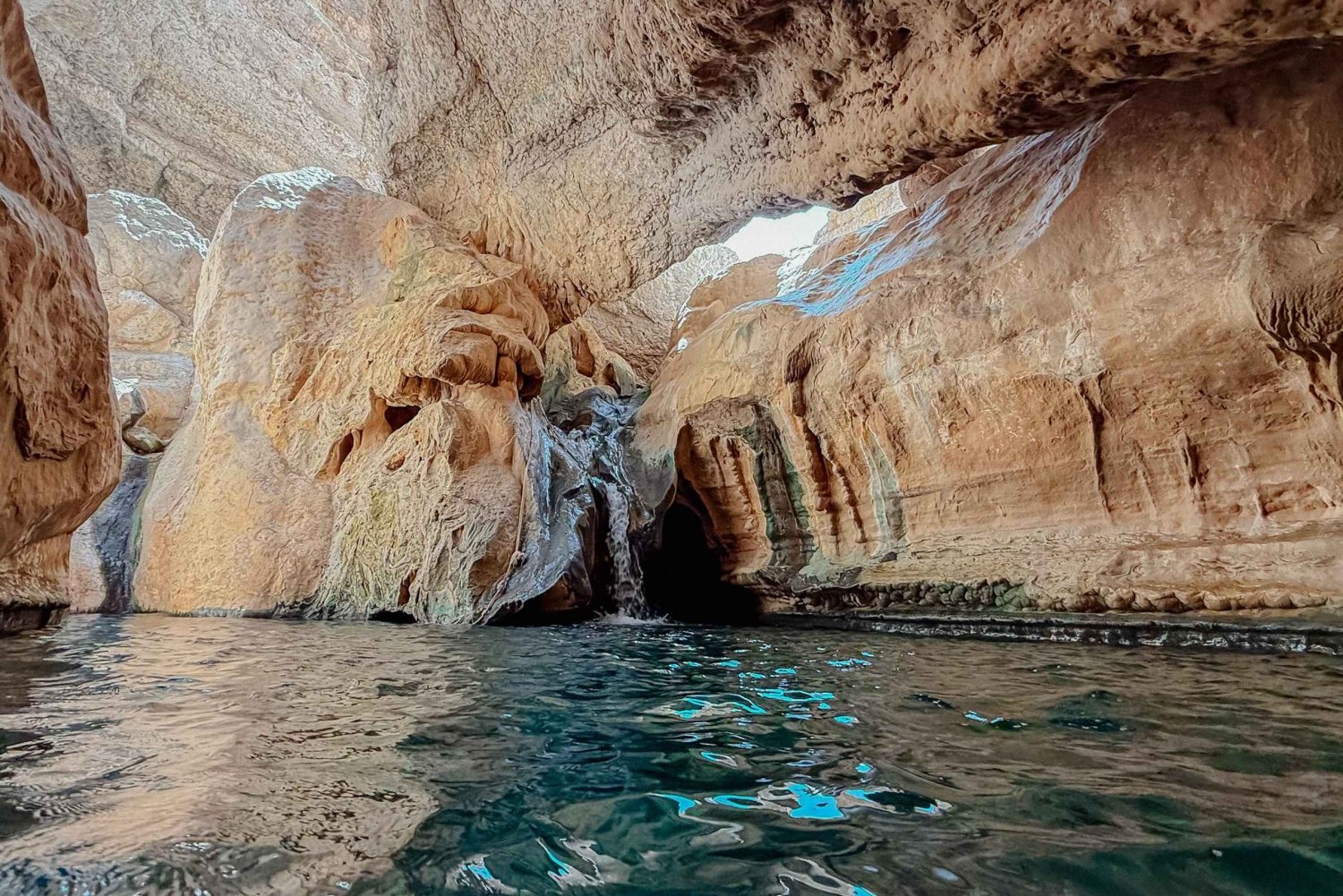 Guida locale dell'Oman Acqua da bere Escursione guidata a Wadi Shab Assistenza durante il nuoto e l'esplorazione delle grotte Trasferimento in barcaImportant Information