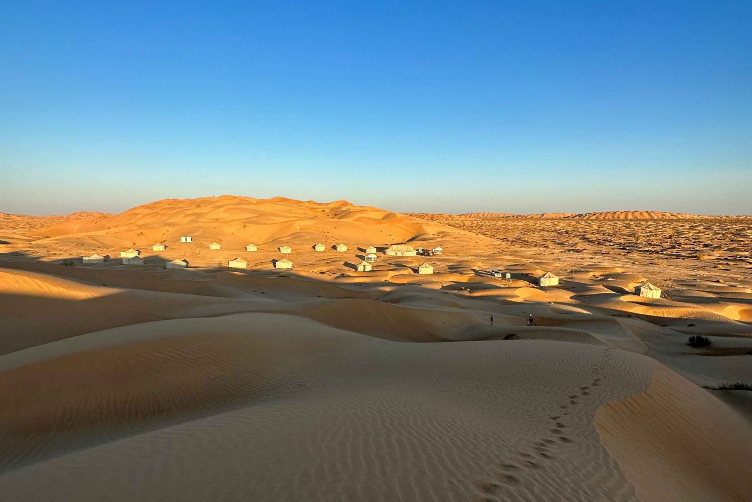 世界最大の砂丘砂漠の一つ、エンプティクォーターを探索しましょう。砂丘の頂上で夕日を眺め、砂漠の真ん中にあるベドウィンテントで一夜を過ごしましょう。