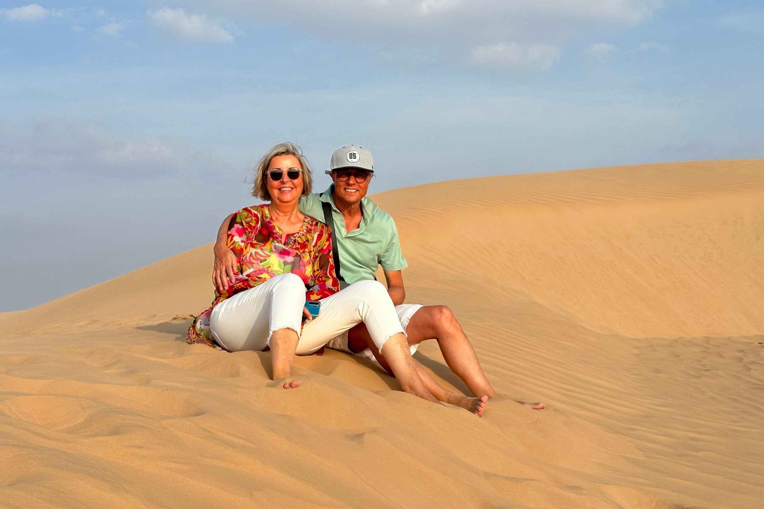 このツアーでは、まず美しい景色が広がるサラーラの美しい山々を越え、サラーラ市の北40kmに位置するワディ・ダウカ(ユネスコ世界遺産)に立ち寄ります。ここは、フランキンセンスの木(ボスウェリア・サクラ)が今も自生し、フランキンセンスが収穫されている主要な場所です。その後、サラーラの北約180km、ルブ・アル・ハリ(空の地区)にある失われた都市ウバール(ユネスコ世界遺産)に進みます。この都市は、古代にフランキンセンスの取引の陸港であったことで有名です。その後、空の地区の砂漠に向かってさらに28kmドライブし、赤い砂丘を楽しみ、砂丘の頂上からパノラマの景色を眺めながら夕日を眺めます。その後、一泊オプションをお選びの場合は、ベドウィン キャンプにご案内し、夕食、星空観察、焚き火の楽しいひとときをお楽しみください。その後、キャンプでプライベート テントをご利用いただけます。朝までそこでお休みいただき、朝食をとった後、サラーラに戻ります。サンセット オプションをお選びの場合は、サンセットをご覧いただいた後、サラーラまで車で戻ります。Includes