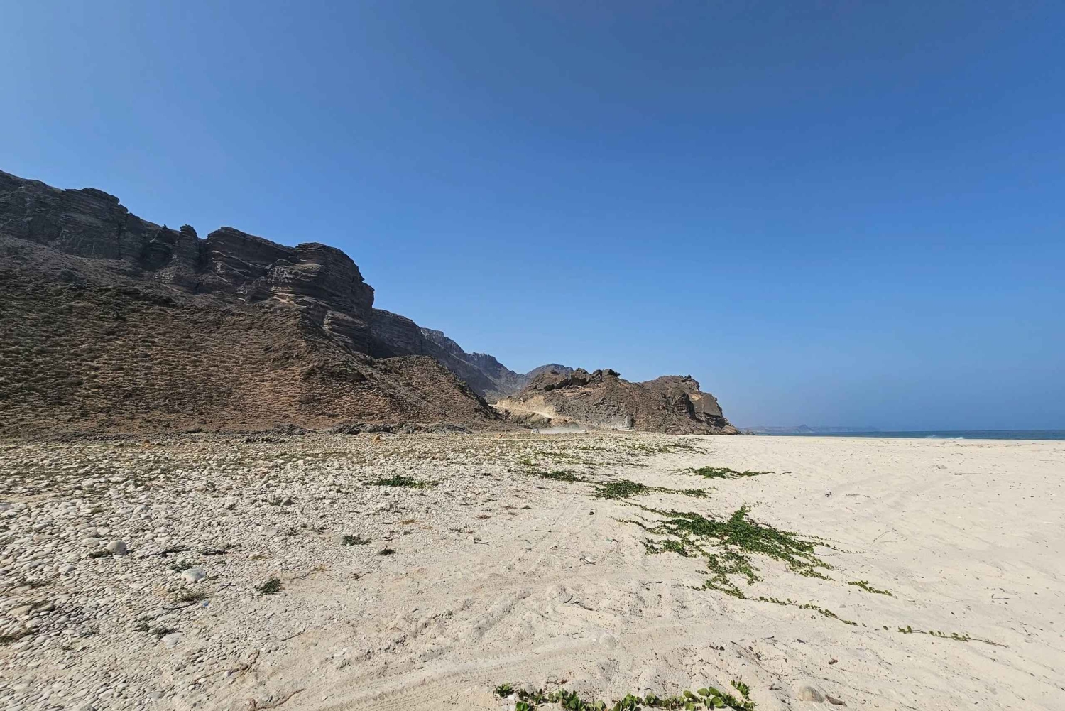 快適な4WD車でホテルにお迎えにあがり、旅を始めましょう。サラーラの西にある、家族経営の小さなラクダ農場へお出かけください。ここではパフォーマンスやラクダ乗りはありません。本物の砂漠の生活をご体験いただけます。ラクダが地元の家族をどのように支えているかを学び、ドファール文化の伝統的な主食である新鮮なラクダのミルクをお試しください。地元の伝統に興味をお持ちの方に最適な、敬意を払った観察訪問です。 2つ目の目的地:アイン・ラザト泉 ドファール山脈の麓に位置するアイン・ラザト泉は、緑豊かで静かな緑のオアシスで、特にハリーフのモンスーンシーズンには活気に満ちています。足を伸ばしたり、美しい写真を撮ったり、涼しく新鮮な山の空気を吸ったりして、旅を続けてください。 目的地3:乳香の道へ 曲がりくねった山道を登っていくと、ガイドが崖に生えている最初のボスウェリア・サクラの木をご案内します。これらの木から、世界で最も貴重な乳香が採れます。観光客がめったに訪れない、ターコイズブルーの海が広がる秘境のビーチを一望できる絶景ポイントに立ち寄ります。さらに進むと、自然の生息地に生えている野生の乳香の木をご覧いただけます。ガイドが木の見分け方を教え、生の樹脂の香りを嗅いでいただき、この古代の貿易がどのようにドファール地方を帝国全体で有名にしたかの物語をお伝えします。 4:ファザヤ・ビーチ — 水泳とリフレッシュ オマーンで最も手つかずの美しい海岸線の一つであるファザヤビーチに到着いたします。黄金の崖と透き通った青い海が出会うこの場所は、水泳や日光浴、またはただのんびり過ごすのに最適な場所です。オマーン産のデーツやボトルウォーターなどの軽食をご用意しております。タオルと水着を必ずご持参ください。 ストップ5:ムグセイルのサンセットリチュアル 次に、ムグセイルビーチのドラマチックな崖へ向かいます。ここでは、強力な海のブローホールが石灰岩の岩を通して水を空に向かって送り出しています。アラビア海に太陽が沈む頃、乳香の香りがする空気を深く吸い込み、静けさと自然の美しさに満ちたこの完璧な瞬間をお楽しみください。 6:夜のサラーラ — フランキンセンス市場と街の灯 夕日が沈んだら、光り輝くサラーラの街へお戻りください。まずは、お香の香りが漂うハファ・スークで夜をお過ごしください。ここでは、さまざまな種類のフランキンセンス、ボディオイル、香水をお買い求めいただけます。ガイドが、地元の人々のように上質な樹脂やオイルを選ぶお手伝いをいたします。 夜空の下で美しく照らされている壮大なスルタン・カブース・モスクにも、少し立ち寄ります。 最後に、サラーラ・グランドモールを訪問します。ここでは、現代のオマーンの調香師が、乳香の伝統に深く根差した高級ブレンドを提供しています。Includes