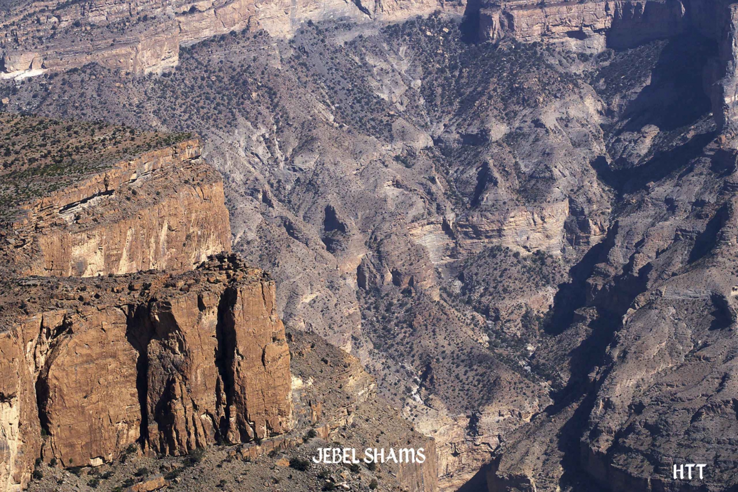 - ワディ・グールの段々畑とジェベル・シャムスのパノラマを見る。