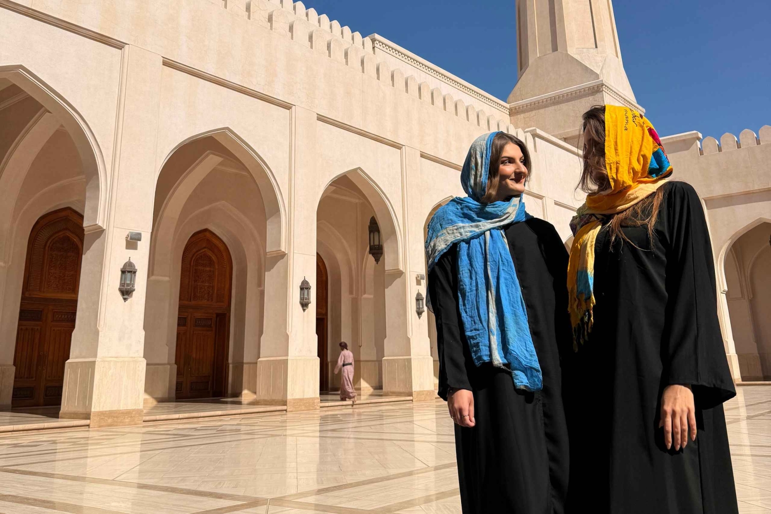 - Modest dress is required for mosque visit; women should cover hair, arms, and legs, and men must wear long trousers and sleeved shirts.