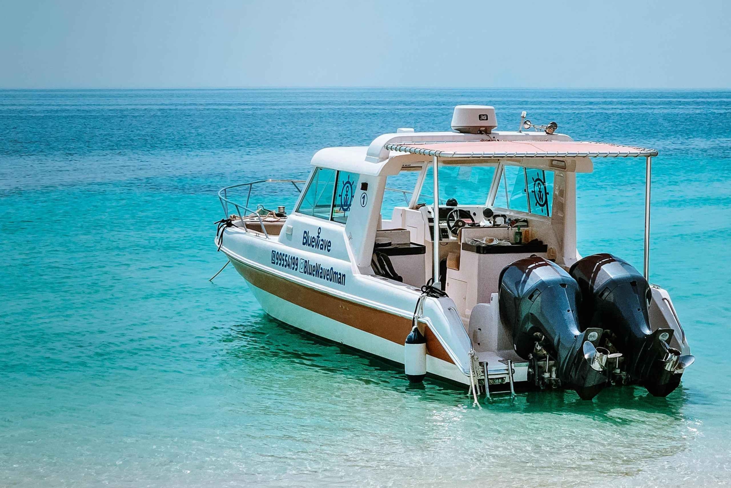 Begynn på et uforglemmelig snorkleeventyr til Daymaniyat Island, Omans skjulte perle og et beskyttet marinreservat fullt av livlige korallrev og mangfoldig marint liv. Svøm i krystallklart vann sammen med fargerike fisker, grasiøse havskilpadder og andre fascinerende sjødyr. Nyt en guidet tur med snorkleutstyr av høy kvalitet og kyndig veiledning, som sikrer en trygg og hyggelig opplevelse for alle ferdighetsnivåer. Enten du er en erfaren snorkler eller nybegynner, tilbyr denne turen fantastiske undervannsutsikter og en sjanse til å komme i kontakt med naturen i sin reneste form. Slapp av, utforsk og skap minner for livet. Bestill nå for et eventyr du aldri vil glemme! Bluewave Oman venter på deg.Includes