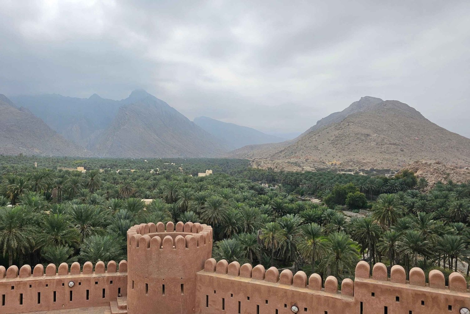Rozpocznij swoją przygodę od wygodnego odbioru z hotelu w Maskacie, lotniska w Maskacie lub portu Sultan Qaboos w Muttrah. Udaj się do Wilayat of Rustaq, jednej ze starożytnych stolic Omanu, znanej z tętniącego życiem rynku, źródeł wody, bujnych farm i palm. Odwiedź imponujący zamek Al-Hazm i odkryj jego historyczną architekturę. Następnie odwiedź Qasra House, stary dom omański, który został zachowany jako muzeum, oferujące wgląd w tradycyjne życie Omanu. Następnie delektuj się tradycyjnym obiadem omańskim, doświadczając bogatych smaków lokalnej kuchni. Kontynuuj podróż do Wilayat Nakhal w prowincji Al Batinah i odwiedź starożytny fort Nakhal. Delektuj się filiżanką kawy, podziwiając wspaniałe widoki z fortu. Następnie zrelaksuj się w Ain Al Thawra, jednym z naturalnych gorących źródeł Omanu. Zanurz się w ciepłych wodach i odpręż się w spokojnej okolicy. (Kąpiel w gorących źródłach jest opcjonalna). Jeśli będziesz miał szczęście, możesz trafić na pokaz samochodów terenowych na piasku, ekscytujące widowisko, które zazwyczaj odbywa się w piątki i soboty. Po zakończeniu przygody wróć do Muscat z niezapomnianymi wspomnieniami bogatej historii i naturalnego piękna Omanu.Includes