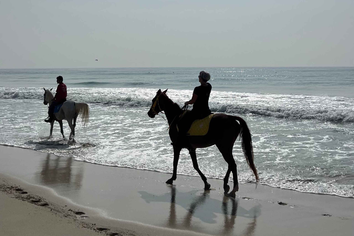 Att rida på stranden i Salalah är verkligen något speciellt. Föreställ dig det här: solen börjar gå ner och kastar ett vackert sken över de lugna vågorna när du rider längs stranden. Det är ren magi, särskilt vid solnedgången. Och det bästa av allt? Det är för alla - barn kan rida på ponnyer och vuxna kan också njuta av det, oavsett om du är nybörjare eller proffs. Det är ett fantastiskt sätt att uppleva naturens skönhet och skapa oförglömliga stunder vid havet. Guidad av vårt erfarna team utforskar du sandstränderna, njuter av havets lugnande ljud och beundrar kustens vackra natur. Det är ett underbart sätt att varva ner, njuta av utsikten över havet och njuta av en lugn tur i en hisnande naturlig miljö. För att hålla det personligt och avslappnat görs turen i små grupper på upp till 4 personer.Includes